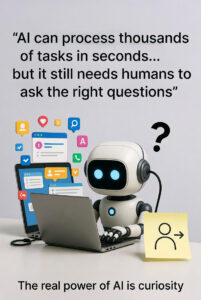 In the end, AI is a tool, a fast, clever, and capable tool, but it works best when humans lead the way. The combination of human insight and AI efficiency creates something neither could achieve alone. Humans bring curiosity, creativity, and judgment. AI brings speed, analysis, and scalability. Together, they become a superpower that allows us to innovate, solve problems, and create meaningful results.